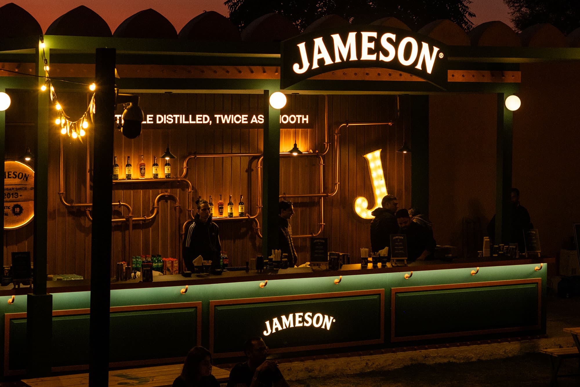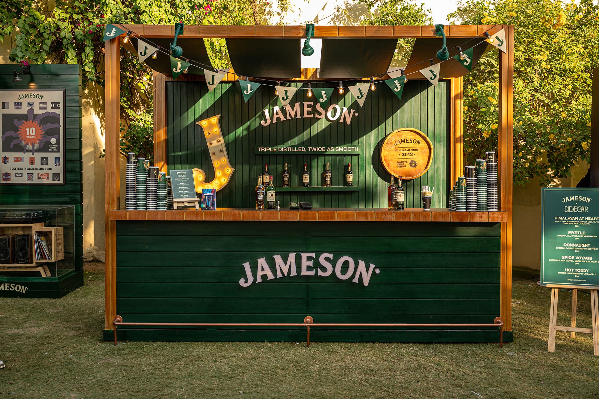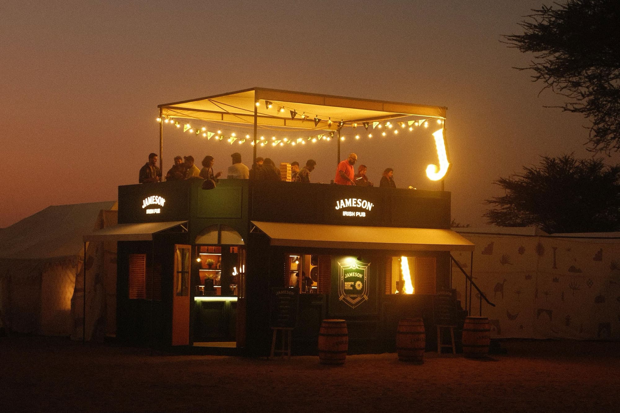 At Magnetic Fields, Arcade designed and executed four unique experiential bars for Jameson that quickly became focal points of the festival. Among these was a highly engaging double-decker pub featuring a Hi-Fi and hand crafted sound system. Another standout was the larger-than-life Double Barrel Bar, which stood an impressive 13 feet high and showcased Jameson’s flagship Black Barrel whiskey.