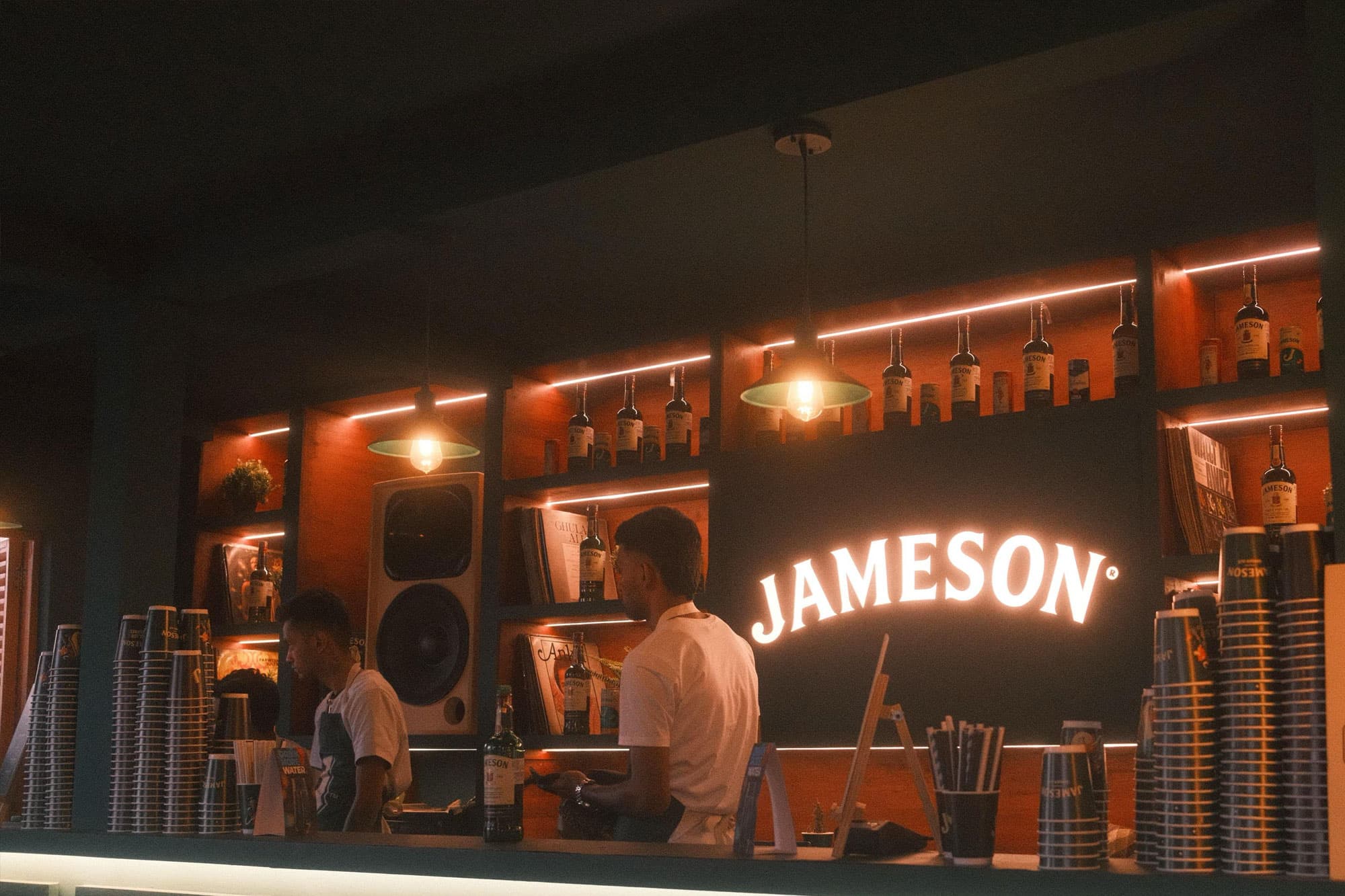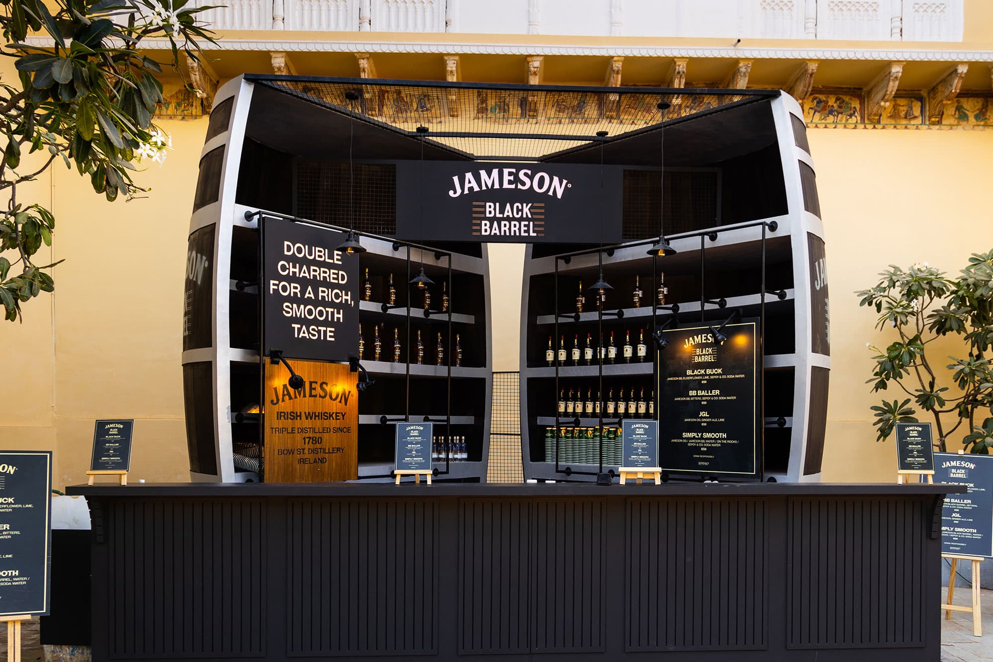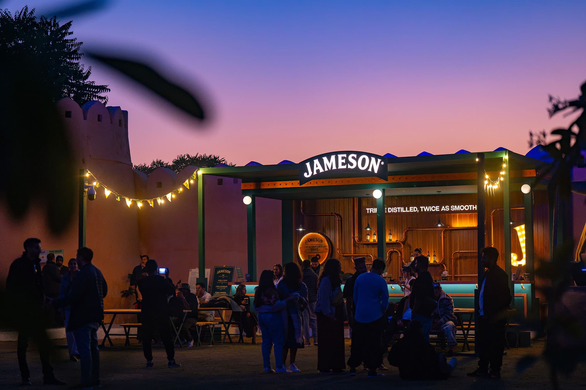 At Magnetic Fields, Arcade designed and executed four unique experiential bars for Jameson that quickly became focal points of the festival. Among these was a highly engaging double-decker pub featuring a Hi-Fi and hand crafted sound system. Another standout was the larger-than-life Double Barrel Bar, which stood an impressive 13 feet high and showcased Jameson’s flagship Black Barrel whiskey.